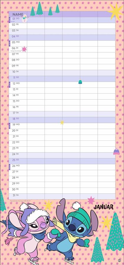 Kunterbunter Familienkalender mit dem chaotischen blauen Alien, bekannt aus "Lilo & Stitch": Alle Termine immer im Blick!